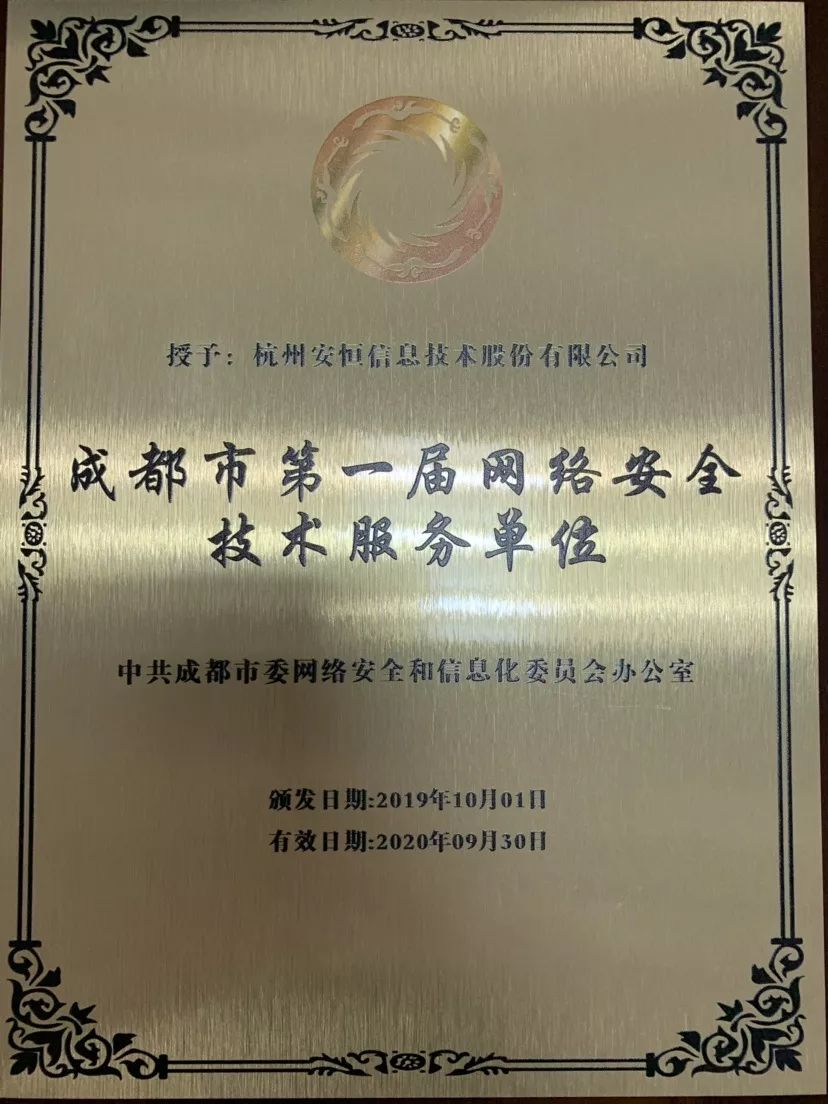 安恒信息入選成都市委網(wǎng)信辦第一屆網(wǎng)絡(luò)安全技術(shù)服務(wù)單位