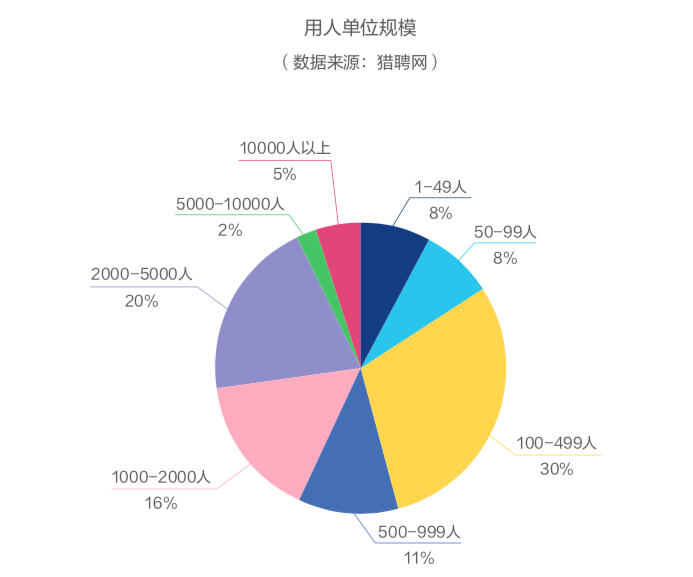 再?gòu)挠萌藛挝灰?guī)模來(lái)看,大型企業(yè)與國(guó)家黨政機(jī)關(guān)的相關(guān)從業(yè)人員較多。但隨著2019網(wǎng)絡(luò)安全等級(jí)保護(hù)制度2.0標(biāo)準(zhǔn)正式發(fā)布,對(duì)中小型機(jī)構(gòu)的安全等級(jí)要求更高,中小型機(jī)構(gòu)對(duì)網(wǎng)絡(luò)安全人才的需求量普遍較高。其中,規(guī)模在100-499人的中小型企業(yè)對(duì)網(wǎng)絡(luò)安全人才的需求量最大,占比約30%;其次是2000-5000人的企業(yè),網(wǎng)絡(luò)安全人才的需求量占比20%。