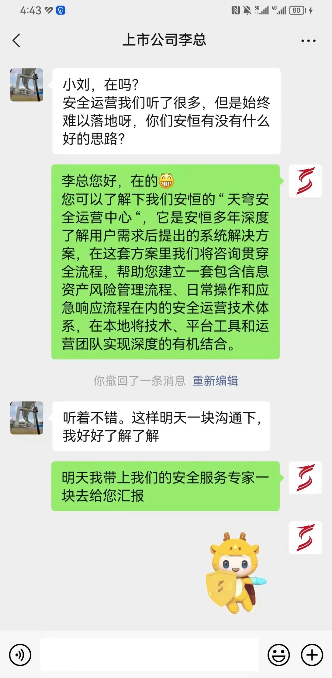 在符合國家相關(guān)運營標(biāo)準(zhǔn)的大前提下,以企業(yè)單位實際的安全運營戰(zhàn)略為導(dǎo)向,通過安全技術(shù)工具搭建統(tǒng)一的安全運營平臺,構(gòu)建安全運營基礎(chǔ),提供預(yù)測、防御、監(jiān)測、響應(yīng)、外部協(xié)同五大領(lǐng)域的安全運營產(chǎn)品、安全運營服務(wù),以及安全運營能力,幫助客戶構(gòu)建更適合自身數(shù)字化轉(zhuǎn)型的安全運營體系。