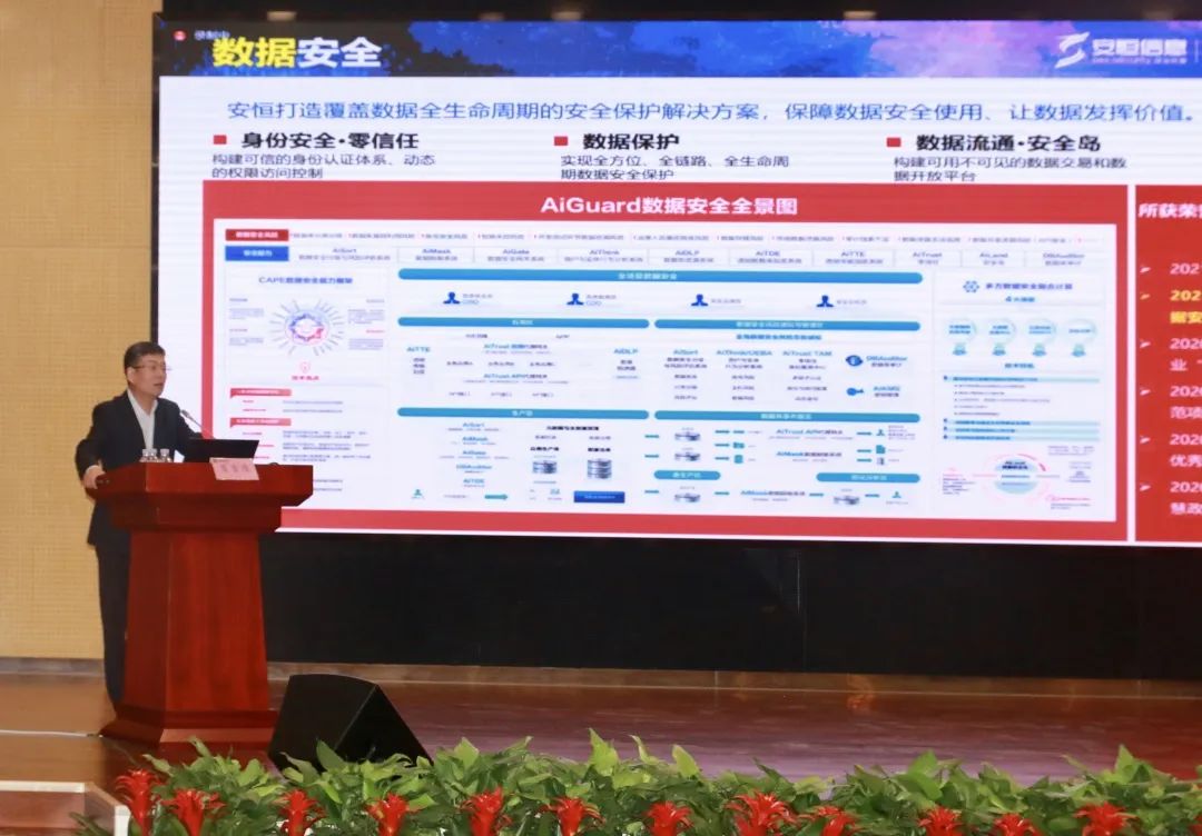 現(xiàn)場(chǎng),盧小波就合作展望作主題分享。他介紹了安恒信息公司發(fā)展情況及合作情況。從云安全服務(wù)、物聯(lián)網(wǎng)安全、軟件供應(yīng)鏈安全等多個(gè)方面介紹了安恒信息多個(gè)平臺(tái)化產(chǎn)品和綜合解決方案。