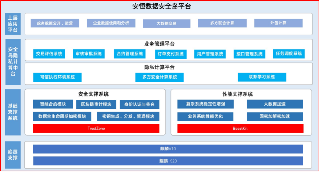 ● 基于鯤鵬硬件TrustZone打造安全可靠的TEE計算環(huán)境,并適配了OpenEuler操作系統(tǒng),全方位的保障了數(shù)據(jù)計算過程中的安全,真正實現(xiàn)了“數(shù)據(jù)可用不可見”。
