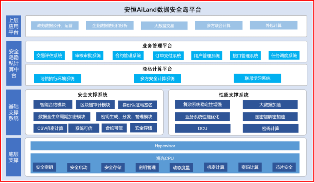 AiLand數(shù)據(jù)安全島隱私計算平臺信創(chuàng)解決方案,支持底層硬件鯤鵬海光兩種處理器。