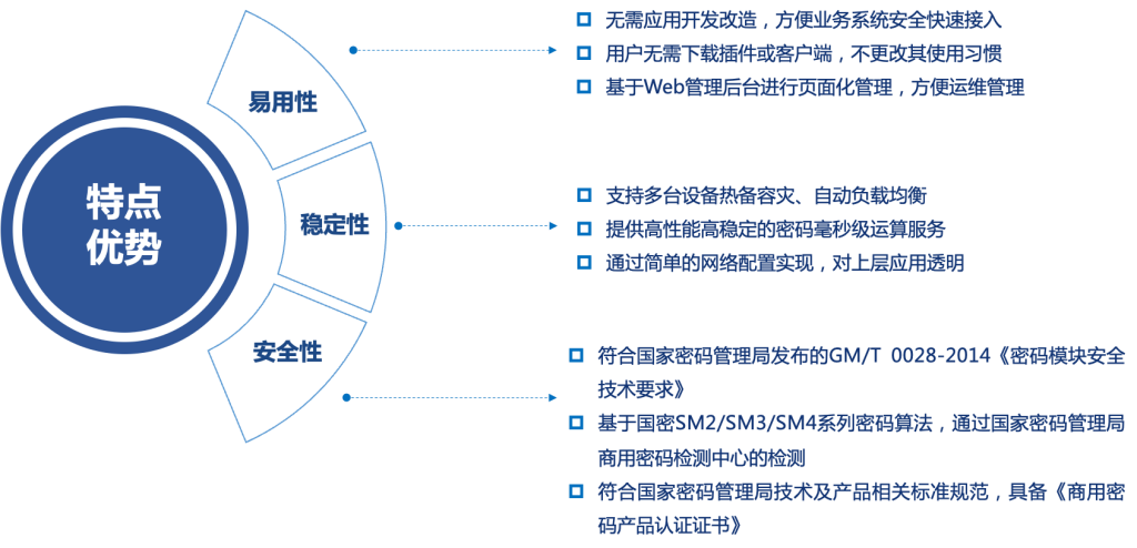 商密應(yīng)用落地要快,便要盡可能減少對業(yè)務(wù)系統(tǒng)的改造,選用的商密產(chǎn)品要透明易用。