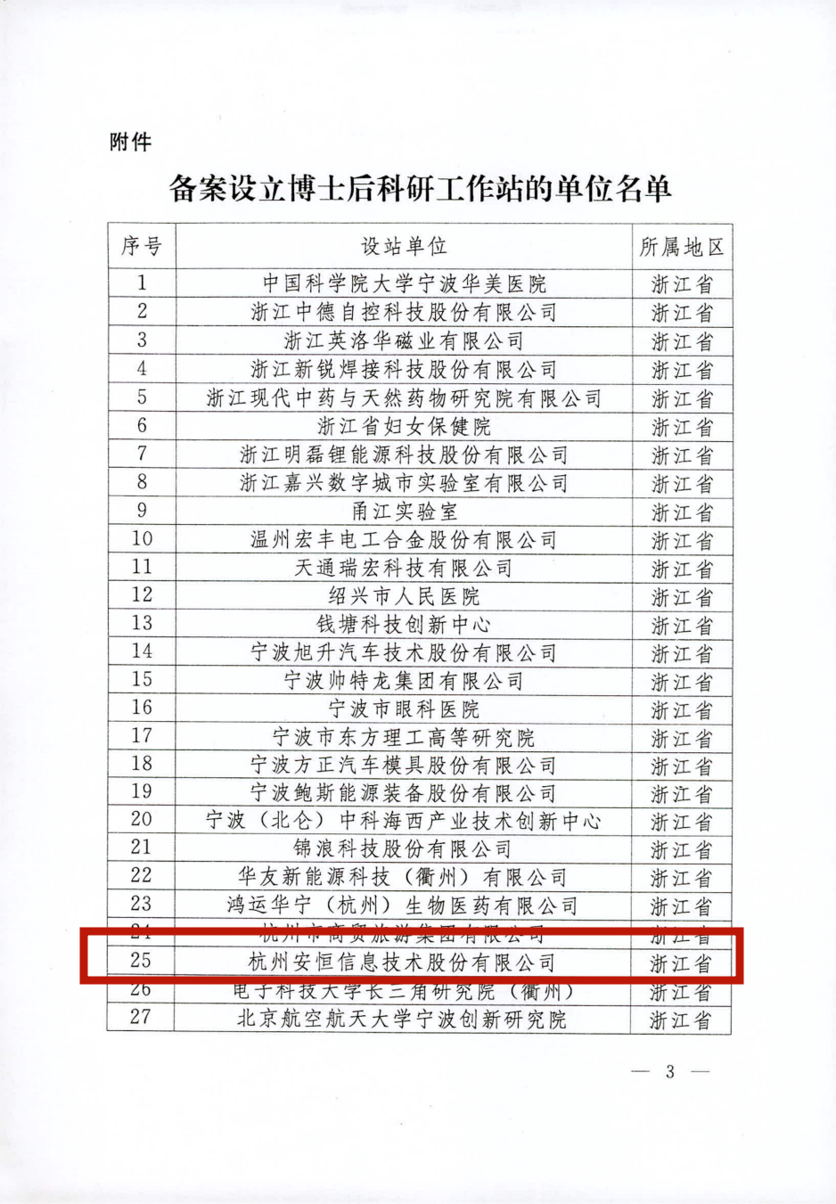 近日,全國博士后管委會辦公室印發(fā)了《關(guān)于2022年第二批次博士后科研工作站新設(shè)站備案情況的函》(博管辦〔2023〕97號),安恒信息博士后科研工作站正式升級成為國家級博士后科研工作站。