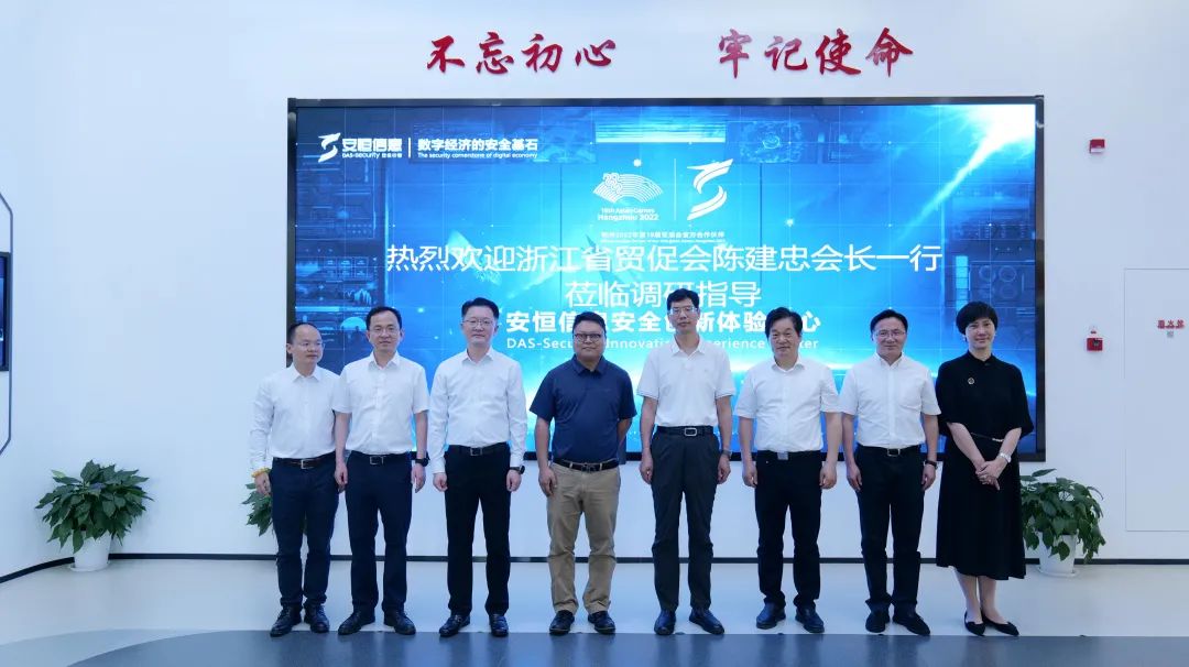 5月29日,浙江省貿(mào)促會黨組書記、會長陳建忠一行赴杭州安恒信息技術(shù)股份有限公司走訪調(diào)研。安恒信息高級副總裁、首席安全官袁明坤,副總裁祝相斌接待陳建忠一行。杭州市貿(mào)促會黨組書記、會長張鴻斌與濱江區(qū)委常委、副區(qū)長高翀等陪同調(diào)研。