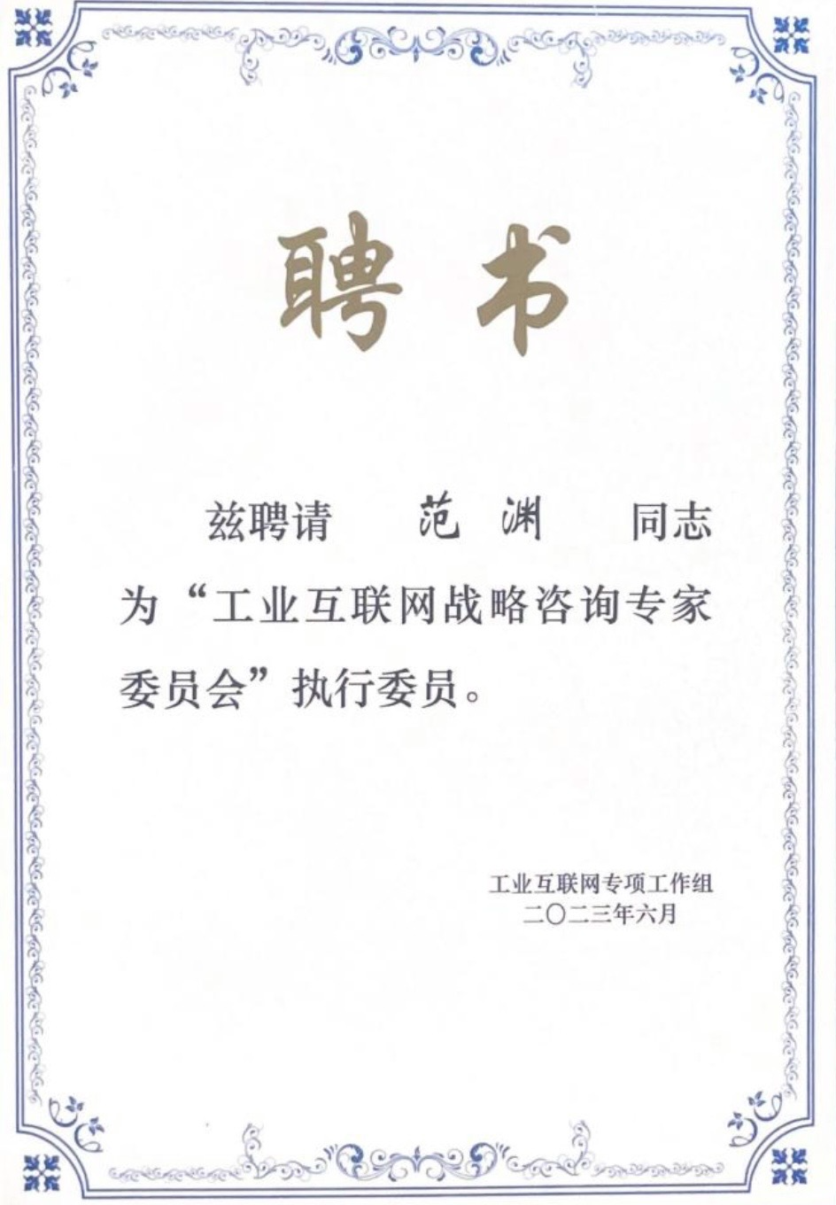 范淵受聘“工業(yè)互聯網戰(zhàn)略咨詢專家委員會”執(zhí)行委員