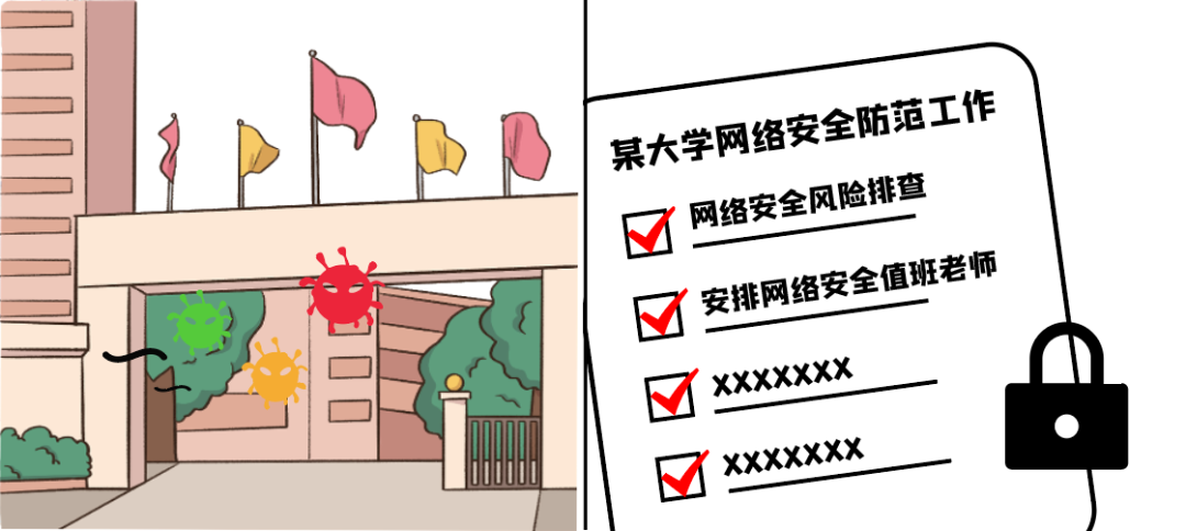 面對黑客的攻勢,學(xué)校也有所防備,暑假前夕,學(xué)校會安排暑假期間的網(wǎng)絡(luò)安全保障工作,如網(wǎng)絡(luò)安全風(fēng)險排查,安排值班老師等,為網(wǎng)絡(luò)安全“層層加鎖”。