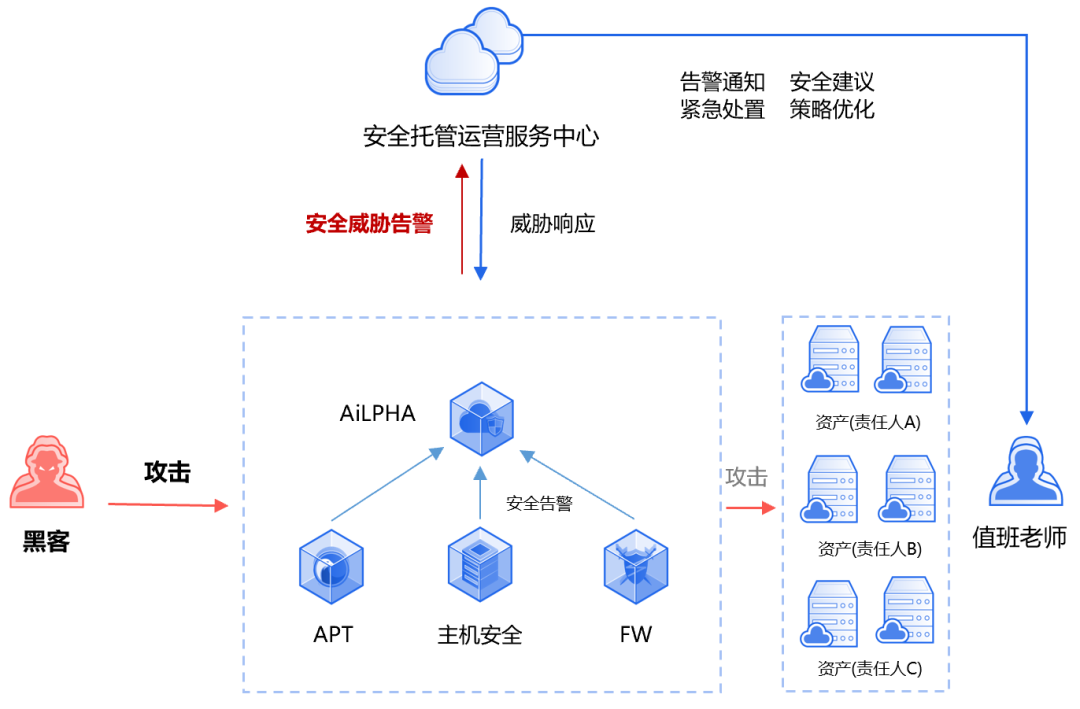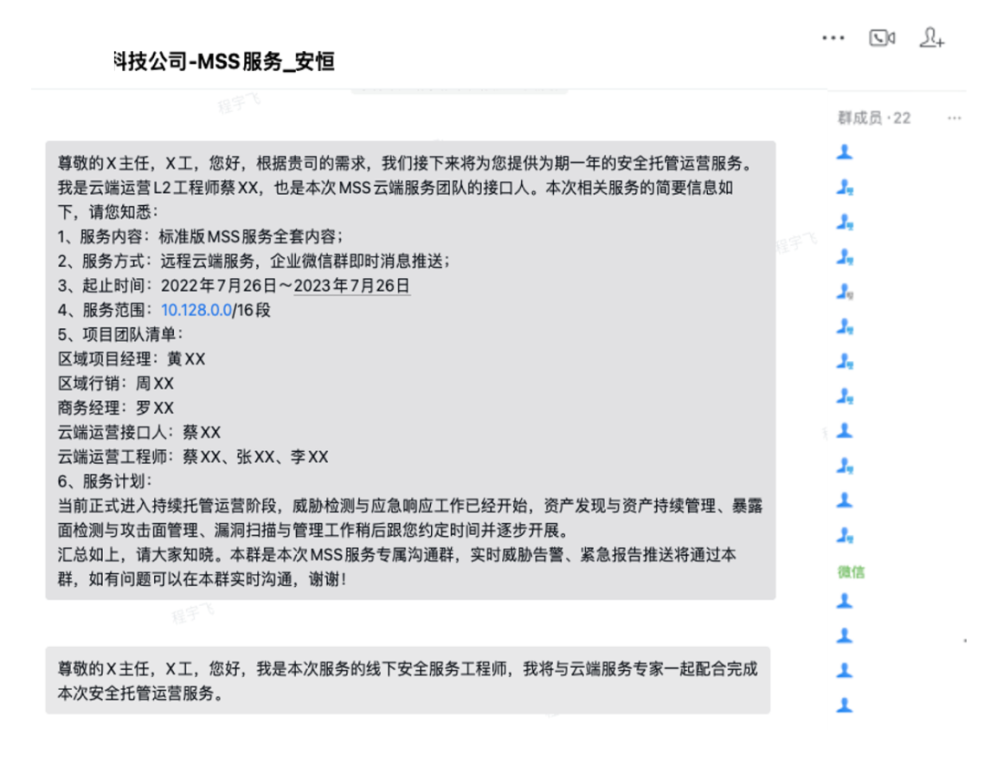 服務(wù)期間,三級云端安全專家團(tuán)隊7*24小時值守,遠(yuǎn)程協(xié)助值班老師完成安全威脅的監(jiān)控、研判、分析工作。