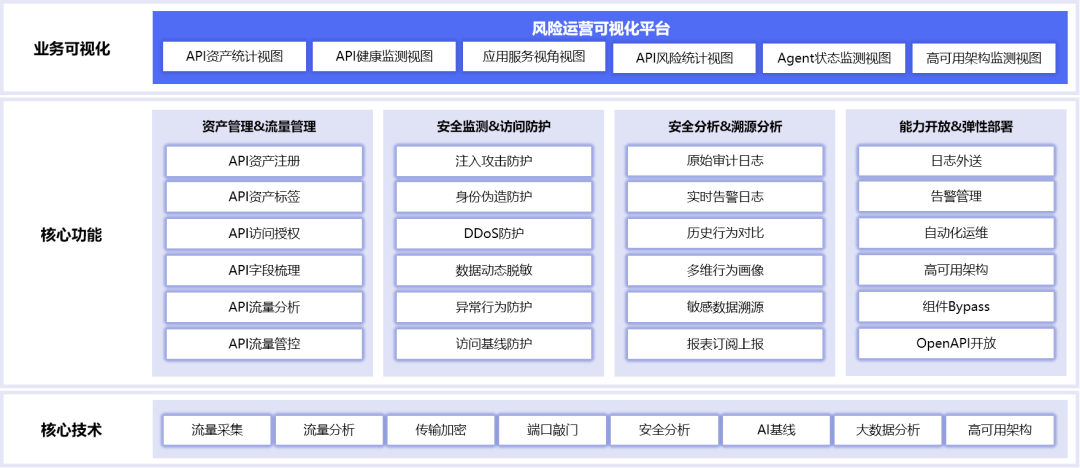 對于數(shù)據(jù)擁有方在開展API業(yè)務共享開放場景,在API業(yè)務互聯(lián)網(wǎng)暴露面治理、Oday/NDay漏洞攻擊、調(diào)用身份動態(tài)鑒權、數(shù)據(jù)分類分級管理、敏感數(shù)據(jù)識別、動態(tài)脫敏性能等多個安全技術細分領域都有非常好的技術創(chuàng)新和實戰(zhàn)化價值。