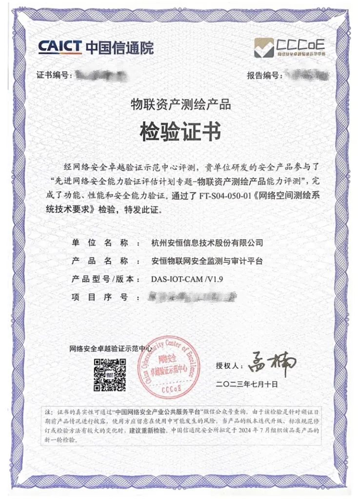 首家!安恒信息通過中國信通院“物聯(lián)資產(chǎn)測繪”評測