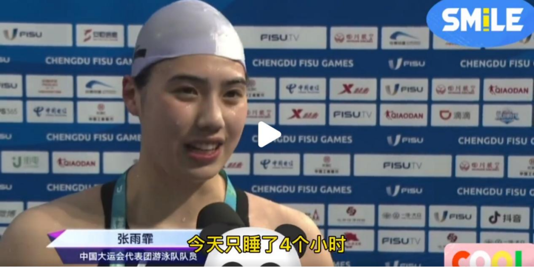 采訪中,張雨霏提到:今天只睡了4個(gè)小時(shí)。