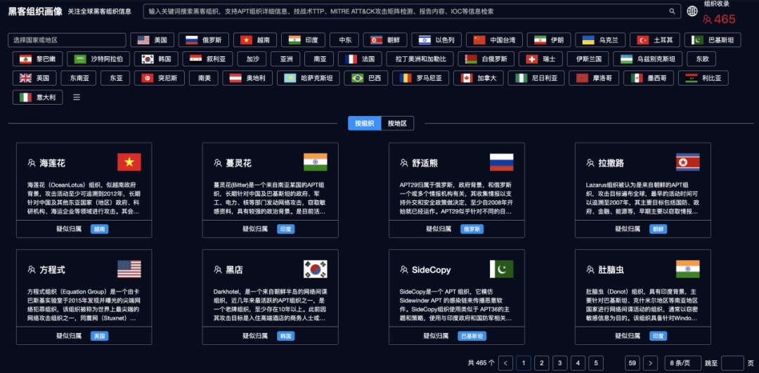 通過畫像了解APT組織詳情。
