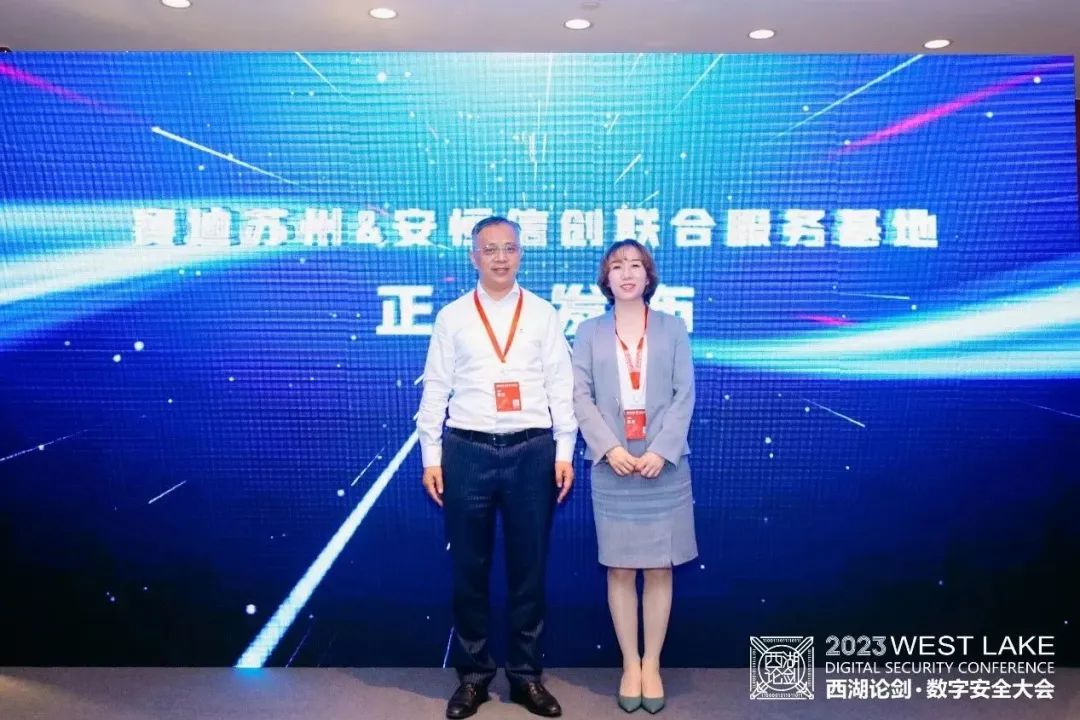 蘇州賽迪公司陳昊與安恒信息劉志樂共同發(fā)布了「蘇州賽迪&安恒信息信創(chuàng)聯(lián)合服務(wù)基地」