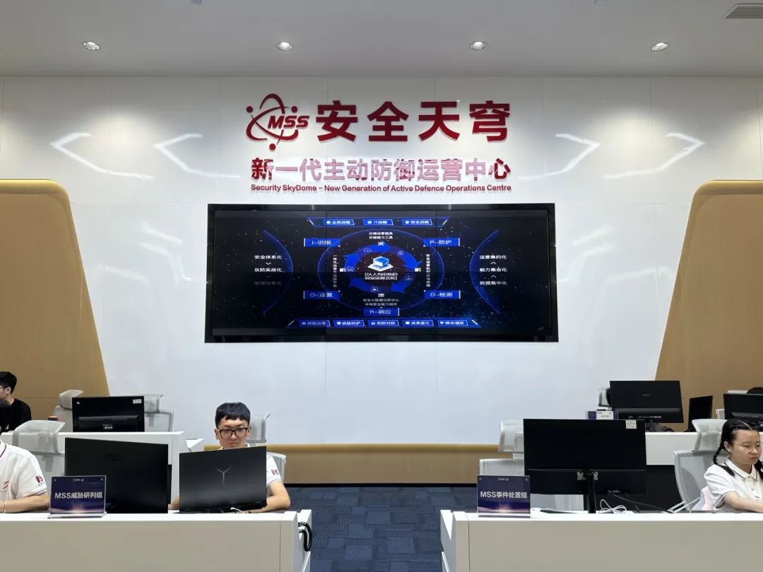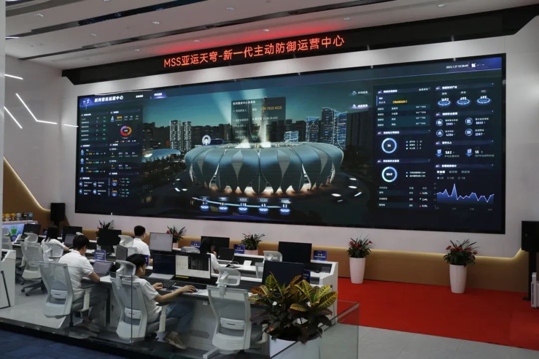 除了在一樓參觀安全創(chuàng)新體驗(yàn)中心,還有可以走進(jìn)MSS亞運(yùn)天穹——新一代主動(dòng)防御運(yùn)營(yíng)中心。MSS亞運(yùn)天穹于今年5月正式啟用,從“看見(jiàn)攻擊”到“看清攻擊”,在亞運(yùn)會(huì)期間7x24小時(shí)全時(shí)段協(xié)助賽事場(chǎng)館的各項(xiàng)網(wǎng)絡(luò)安全工作。