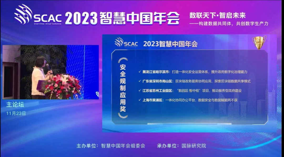 會上開展了2023(第五屆)數(shù)字政府特色評選活動,安恒信息助力哈爾濱市大數(shù)據(jù)中心落地的“打造一體化安全運營體系,提升政府數(shù)字化治理能力”案例榮獲“安全規(guī)制應用獎”。