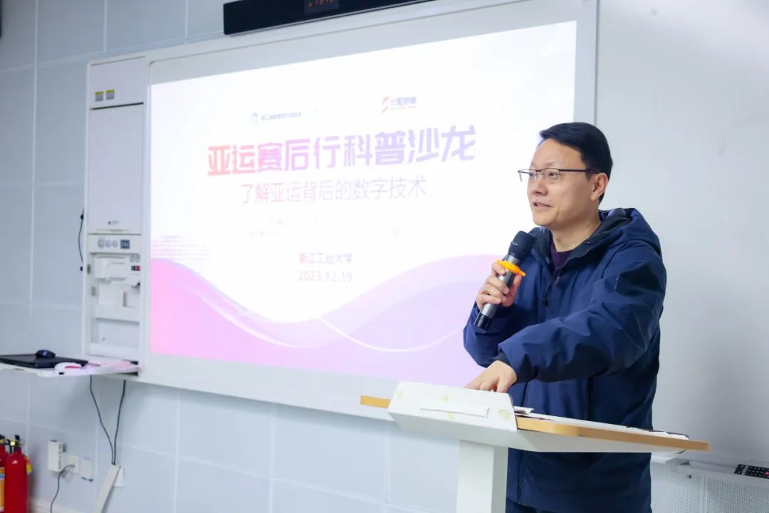 沙龍由浙江工業(yè)大學(xué)計(jì)算機(jī)學(xué)院黨委副書記、紀(jì)委書記毛詩焙主持。計(jì)算機(jī)學(xué)院副院長陳鐵明首先發(fā)表致辭,他表示此次亞運(yùn)賽后行科普活動(dòng)旨在了解亞運(yùn)背后的故事,將亞運(yùn)的豐富內(nèi)涵、精湛技藝以及背后的數(shù)字技術(shù)傳遞給更多的人。致辭中,他向在場青年提出三點(diǎn)希望:希望青年人發(fā)揚(yáng)亞運(yùn)精神,堅(jiān)持不懈、奮斗不息;在日新月異的社會(huì)中,擁抱生活、積極應(yīng)變;融會(huì)貫通、學(xué)以致用,成為網(wǎng)絡(luò)安全的宣傳者和實(shí)踐者。