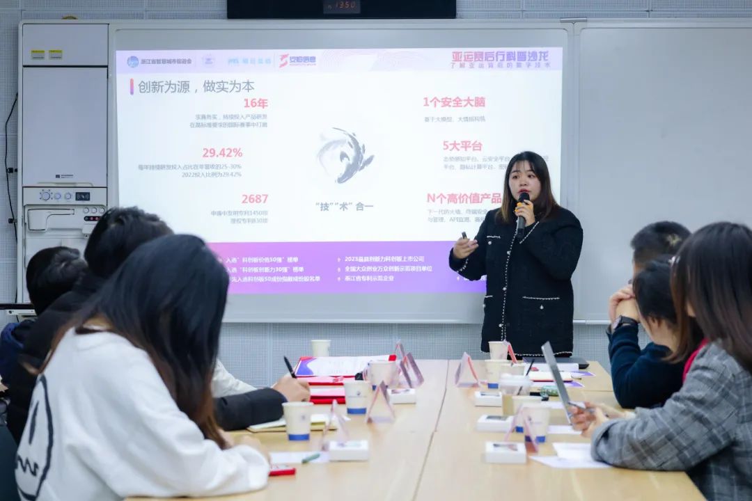 安恒信息副總裁、數(shù)字人才創(chuàng)研院副院長吳鳴旦和計(jì)算機(jī)學(xué)院副教授何玲娜圍繞“亞運(yùn)人才聯(lián)合培養(yǎng)體系”展開介紹。