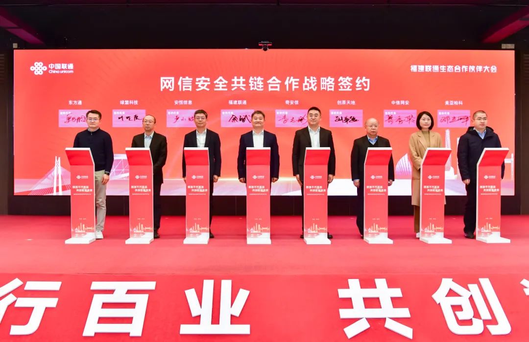 同時(shí),會(huì)上進(jìn)行了網(wǎng)信安全共鏈合作戰(zhàn)略簽約,安恒信息聯(lián)合參與,將攜手福建聯(lián)通共同構(gòu)建福建省網(wǎng)信安全防護(hù)體系,發(fā)揮安全優(yōu)勢(shì)、共促數(shù)字發(fā)展。