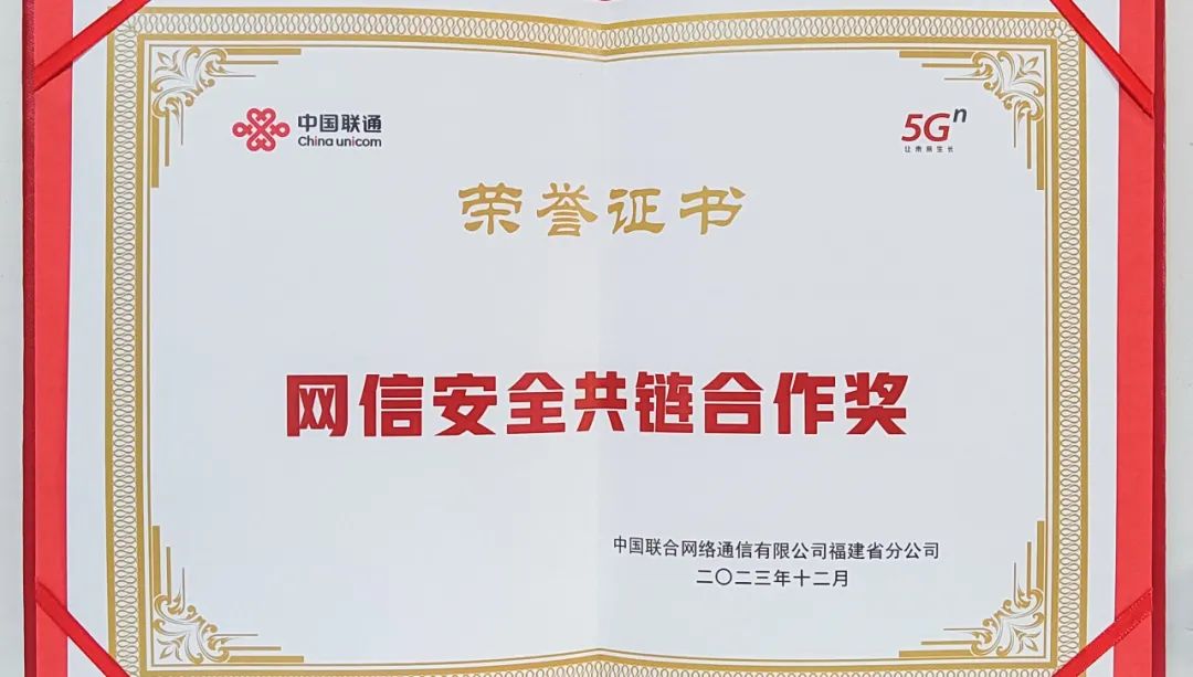 安恒信息獲頒福建聯(lián)通“年度網(wǎng)信安全共鏈合作獎(jiǎng)”,攜手共贏未來