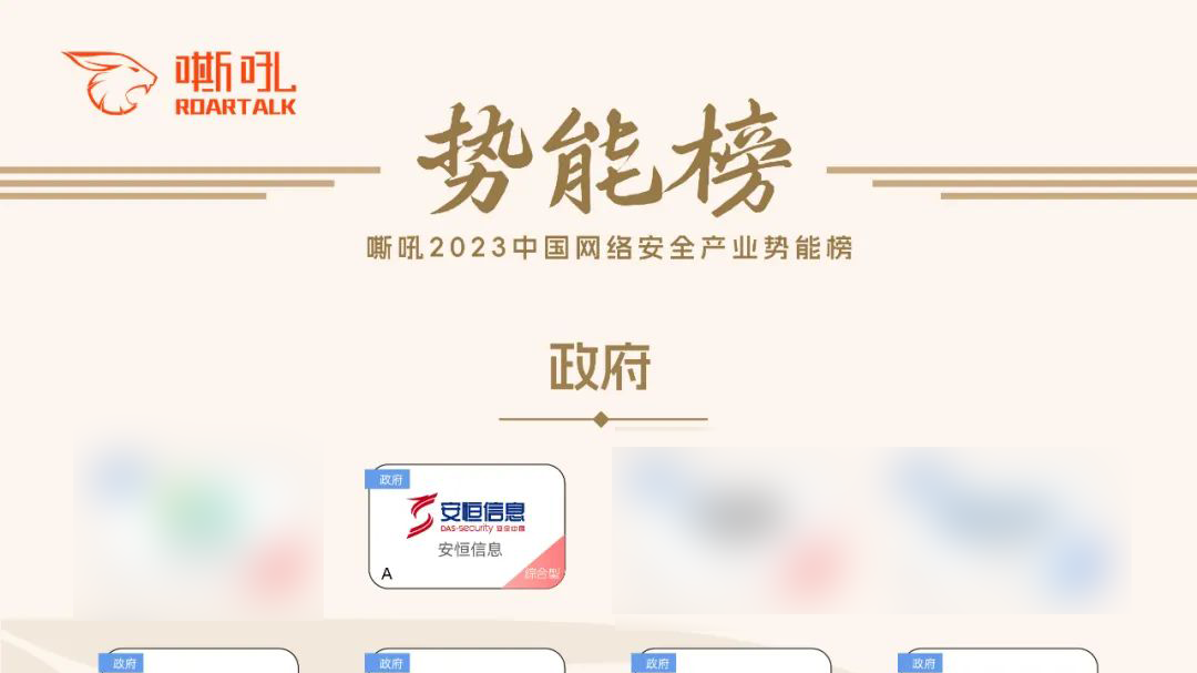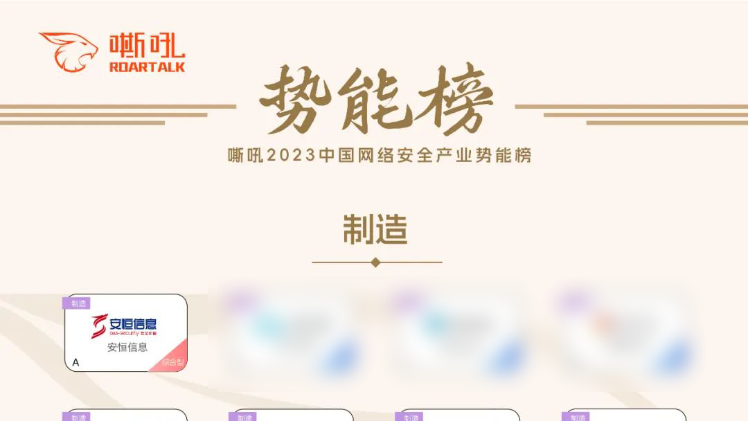 嘶吼安全產(chǎn)業(yè)研究院開展了《2023中國網(wǎng)絡(luò)安全產(chǎn)業(yè)勢能榜》的評選,旨在深入研判和展望中國網(wǎng)絡(luò)安全產(chǎn)業(yè)的發(fā)展趨勢,賦能網(wǎng)安領(lǐng)域頭部廠商擔(dān)負(fù)起自主創(chuàng)新、乘勢而上的產(chǎn)業(yè)責(zé)任。安恒信息成功入選“政府”與“制造”兩大榜單。這一榮譽(yù)是對安恒信息在這兩大行業(yè)中數(shù)字安全領(lǐng)域的領(lǐng)先地位和卓越能力的肯定。作為行業(yè)的領(lǐng)軍企業(yè)之一,安恒信息一直致力于為用戶提供一站式綜合服務(wù)和解決方案,并針對不斷變化的數(shù)字安全威脅和用戶需求持續(xù)進(jìn)行技術(shù)研發(fā)和創(chuàng)新。