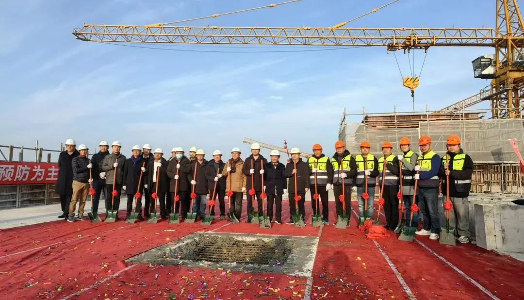 安恒信息董事長范淵,總經理吳卓群,高級副總裁、上海公司總經理顏新興與上海建工二建集團副總裁、臨港新片區(qū)指揮部總指揮郁鳳兵,黨委副書記、臨港新片區(qū)指揮部副總指揮汪志偉等及設計、監(jiān)理、勘察等單位的領導蒞臨現場,共同見證封頂。
