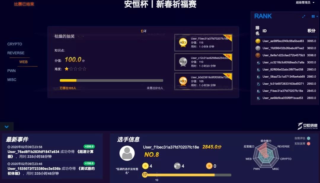 排名前100的選手都獲得了平臺積分獎勵,可在平臺兌換實體物品,并能獲得安恒信息招聘綠色通道。