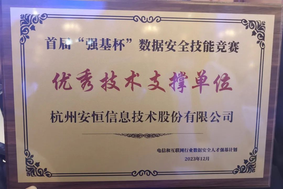 安恒信息獲頒首屆“強(qiáng)基杯”數(shù)據(jù)安全技能競賽“優(yōu)秀技術(shù)支撐單位”