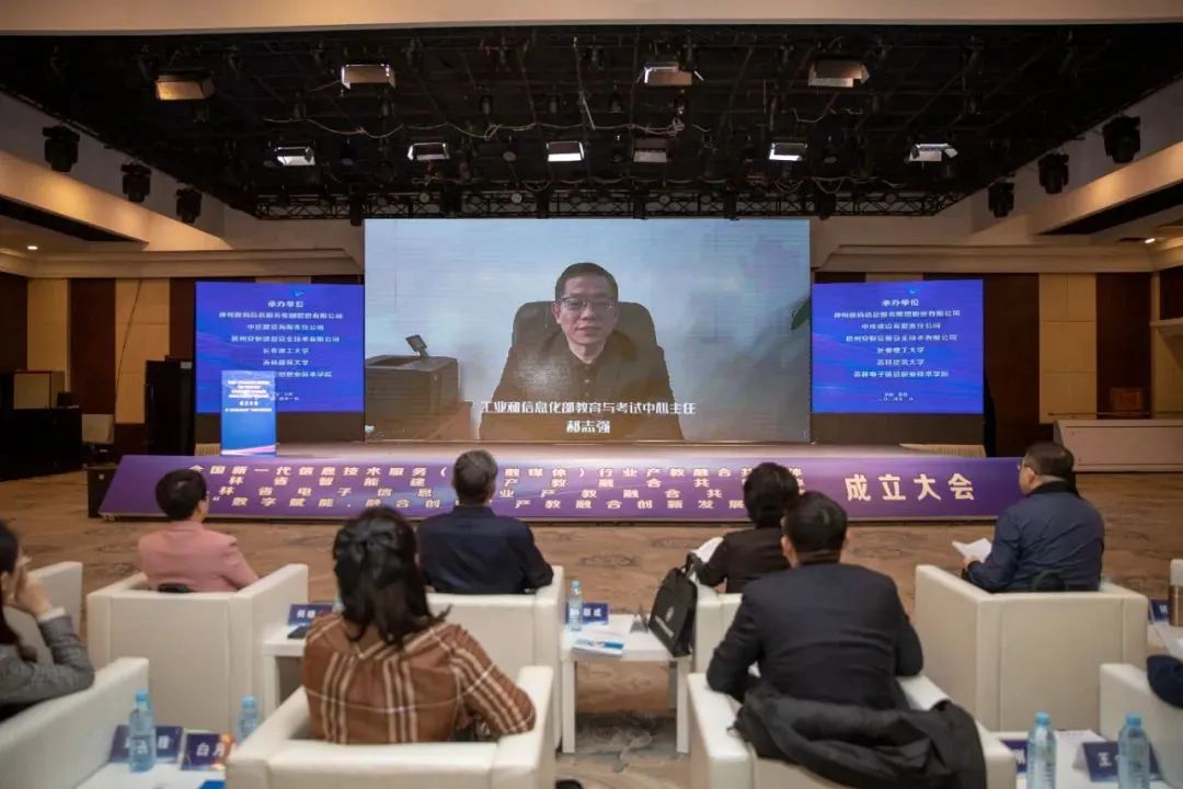 工業(yè)和信息化部教育與考試中心主任郝志強(qiáng)、高校畢業(yè)生就業(yè)協(xié)會(huì)數(shù)字產(chǎn)業(yè)與就業(yè)工作指導(dǎo)委員會(huì)秘書(shū)長(zhǎng)胡永強(qiáng)向共同體成立表示祝賀并講話。