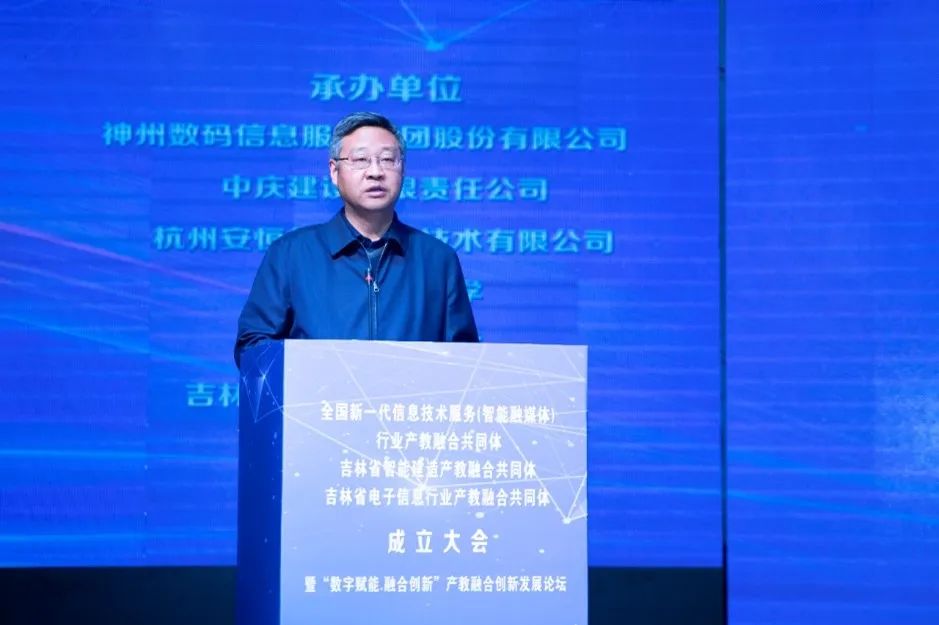1月5日,吉林省電子信息行業(yè)產(chǎn)教融合共同體、吉林省智能建造產(chǎn)教融合共同體、全國(guó)新一代信息技術(shù)服務(wù)(智能融媒體)行業(yè)產(chǎn)教融合共同體成立大會(huì)暨“數(shù)字賦能·融合創(chuàng)新”產(chǎn)教融合創(chuàng)新發(fā)展論壇在吉林市成功舉辦。本次會(huì)議在吉林省教育廳、吉林省工業(yè)和信息化廳、吉林省住房和城鄉(xiāng)建設(shè)廳、吉林市人民政府指導(dǎo)下,由吉林電子信息職業(yè)技術(shù)學(xué)院攜手安恒信息、長(zhǎng)春理工大學(xué)、吉林建筑大學(xué)、神州數(shù)碼信息服務(wù)集團(tuán)股份有限公司、中慶建設(shè)有限責(zé)任公司牽頭承辦。