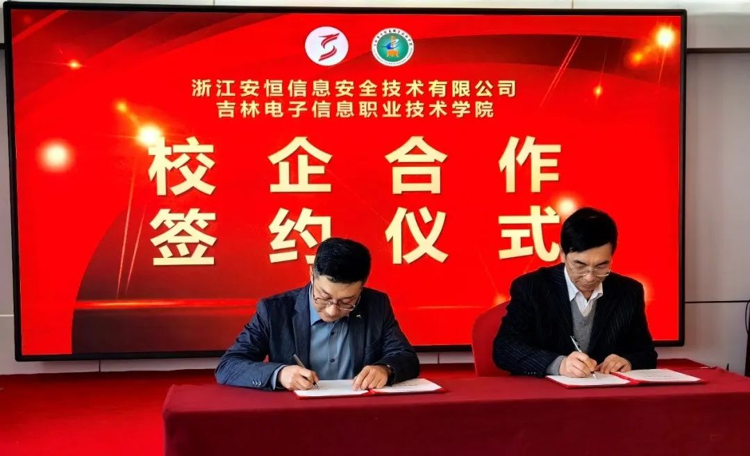 在分論壇中,樊睿代表安恒信息完成與吉林電子信息職業(yè)技術(shù)學(xué)院校企合作簽約,雙方將在未來(lái)展開(kāi)深度合作,攜手共育網(wǎng)絡(luò)安全復(fù)合型人才。