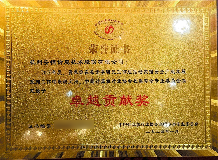 安恒信息獲中國計(jì)算機(jī)行業(yè)協(xié)會(huì)數(shù)據(jù)安全專業(yè)委員會(huì)“卓越貢獻(xiàn)獎(jiǎng)”