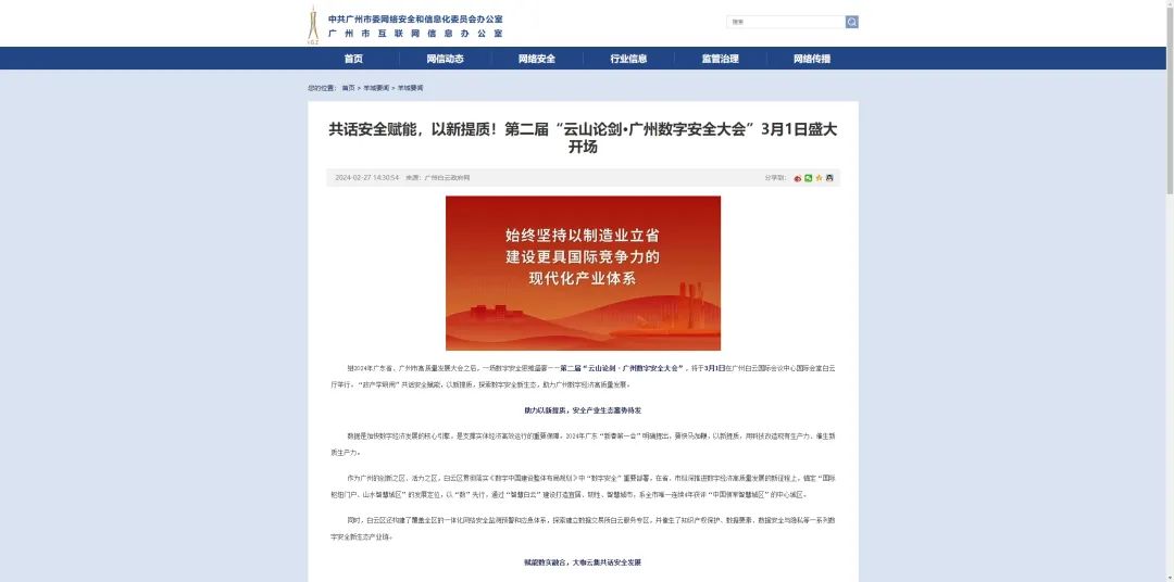 中共廣州市委網(wǎng)信辦官網(wǎng)報(bào)道