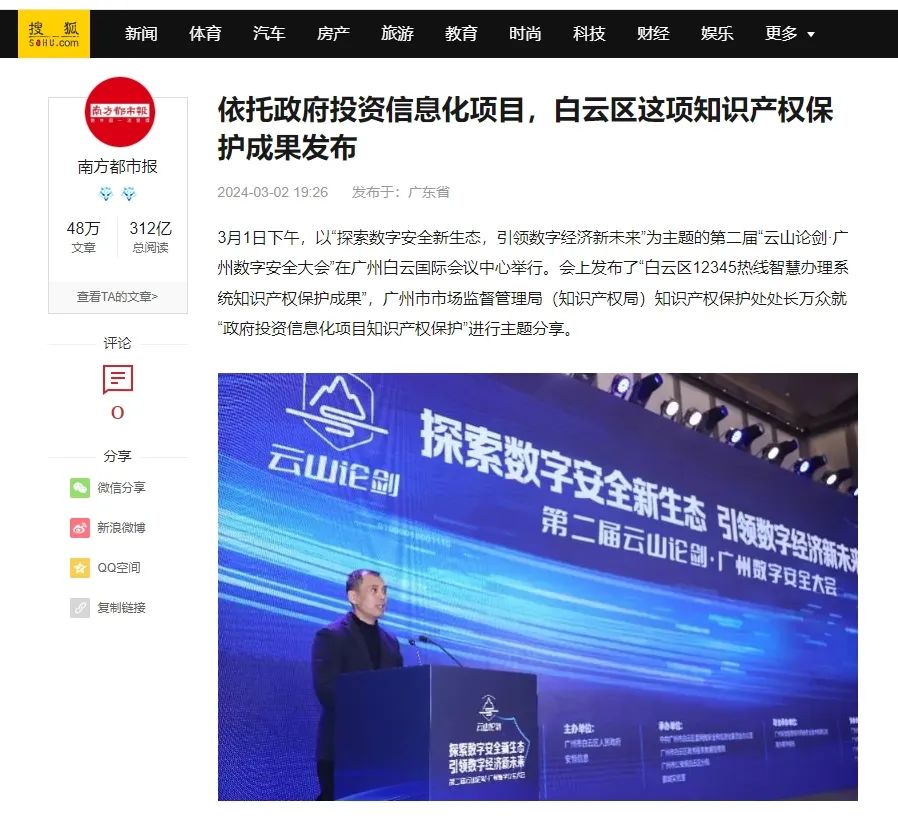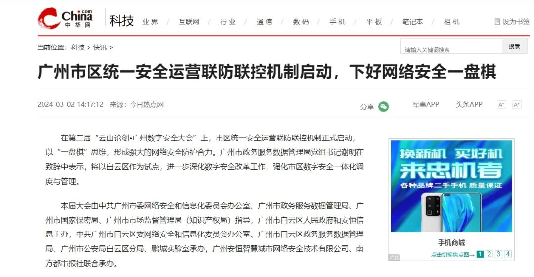 “白云區(qū)12345熱線智慧辦理系統(tǒng)知識(shí)產(chǎn)權(quán)保護(hù)”發(fā)布、“市區(qū)統(tǒng)一安全運(yùn)營(yíng)聯(lián)防聯(lián)控機(jī)制”啟動(dòng)、“廣州市白云區(qū)數(shù)智創(chuàng)新實(shí)驗(yàn)室”揭牌、《體育賽事網(wǎng)絡(luò)安全保障實(shí)踐藍(lán)皮書》首發(fā),廣州市數(shù)字安全建設(shè)最新成果在大會(huì)期間得到了全面展示,并收獲多家媒體持續(xù)關(guān)注并跟蹤報(bào)道。