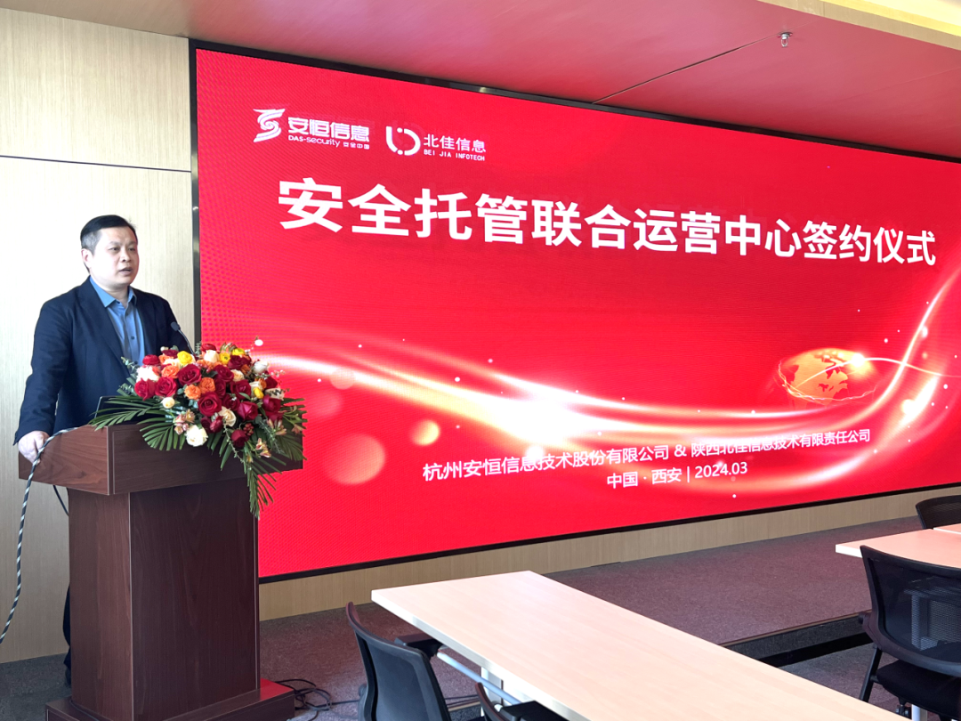 3月11日,安恒信息與陜西北佳信息技術(shù)有限責(zé)任公司(以下簡(jiǎn)稱“北佳信息”)正式簽訂合作協(xié)議書,雙方將聚焦安全托管運(yùn)營服務(wù)領(lǐng)域展開合作,建設(shè)聯(lián)合運(yùn)營中心。