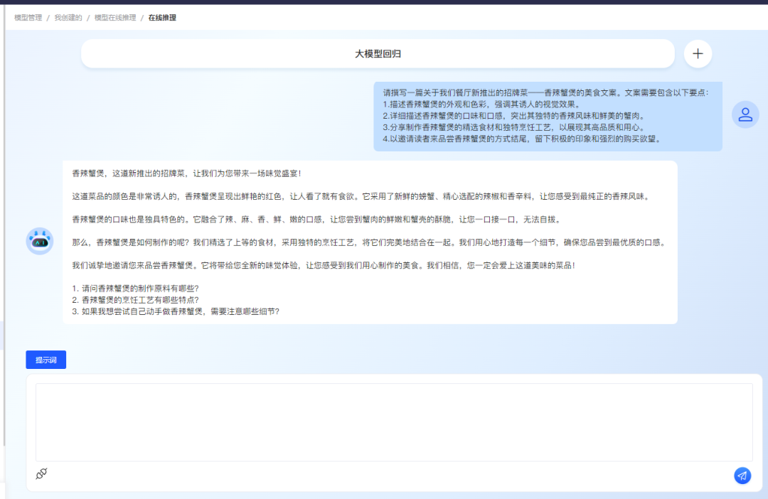 模型方面,平臺支持ChatGLM3、Llama3、Baichuan2 、千問2、gemma-1.1等相關(guān)和其他模型運行。訓(xùn)練數(shù)據(jù)方面,支持大規(guī)模數(shù)據(jù)輸入,支持數(shù)據(jù)處理和多源數(shù)據(jù)安全融合。