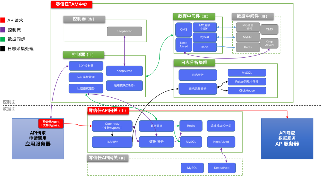 在該運(yùn)營商的API數(shù)據(jù)安全建設(shè)過程中,考慮到高并發(fā)量和可靠性要求,采取了零信任控制器、中間件、日志分析平臺和零信任API網(wǎng)關(guān)分離式部署方式,且前置負(fù)載均衡器支持實(shí)現(xiàn)每個組件的高可用部署模式,負(fù)載均衡設(shè)備對每個組件進(jìn)行定時健康檢查,若存在服務(wù)異常將立即切換至備機(jī),保障業(yè)務(wù)的可靠性。