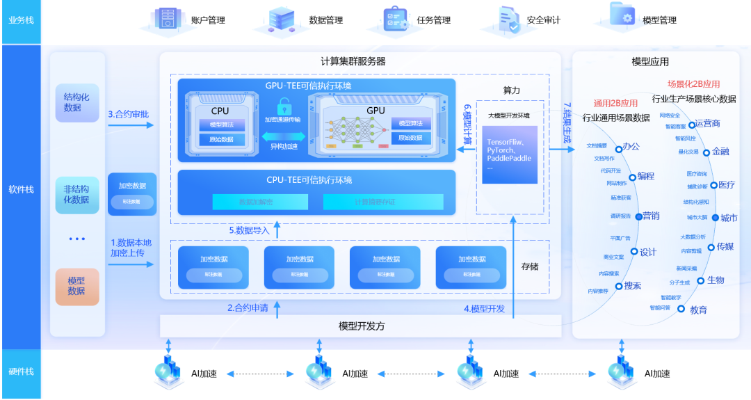 該產(chǎn)品的發(fā)布,意味著除了多方計(jì)算、科學(xué)計(jì)算、人工智能等傳統(tǒng)計(jì)算領(lǐng)域,安恒信息隱私計(jì)算產(chǎn)品同時(shí)可以為大模型場(chǎng)景提供隱私計(jì)算的能力,實(shí)現(xiàn)模型數(shù)據(jù)、訓(xùn)練數(shù)據(jù)、推理數(shù)據(jù)的“可用不可見(jiàn)”。