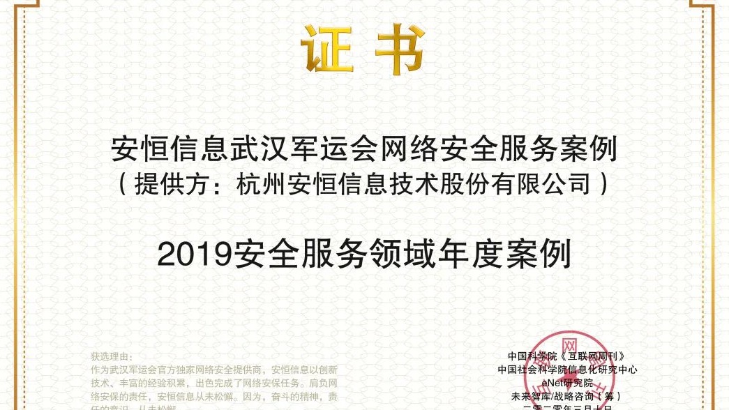安恒信息摘取 “ 2019安全服務(wù)領(lǐng)域年度案例”