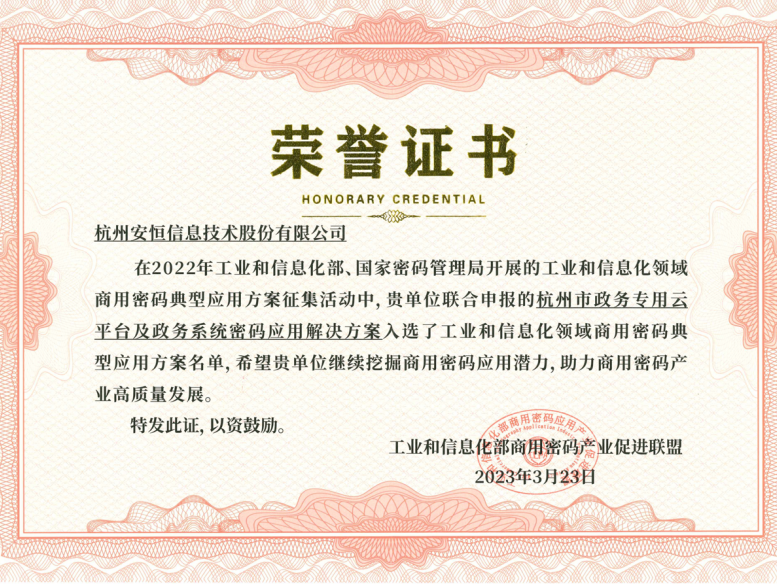 實(shí)力認(rèn)證!安恒信息入選工信部商用密碼典型應(yīng)用方案名單