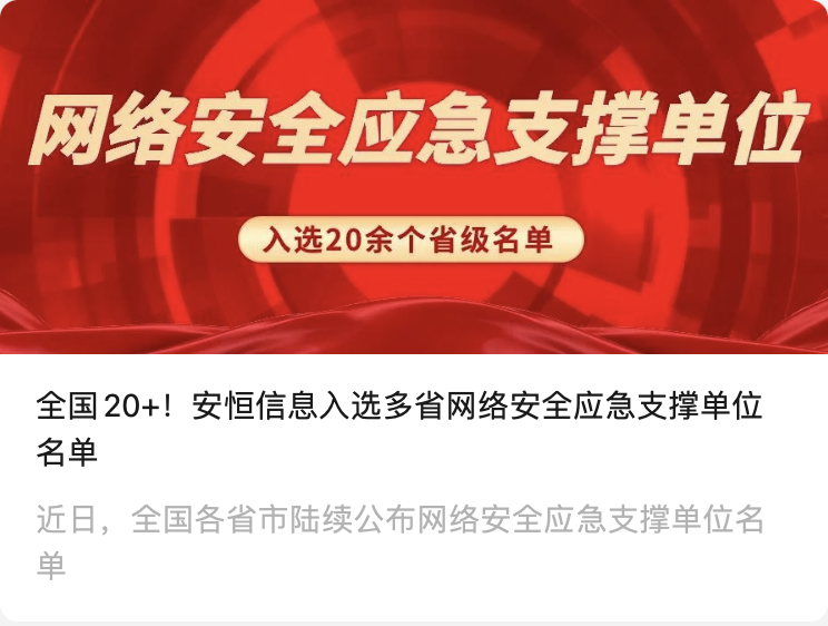 全國20+!安恒信息入選多省網(wǎng)絡(luò)安全應(yīng)急支撐單位名單