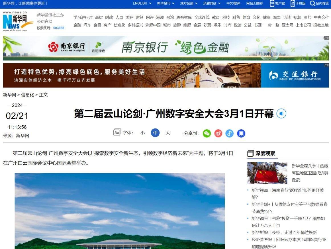 日前,以“探索數(shù)字安全新生態(tài),引領(lǐng)數(shù)字經(jīng)濟(jì)新未來”為主題的第二屆“云山論劍·廣州數(shù)字安全大會(huì)”在廣州白云國(guó)際會(huì)議中心國(guó)際會(huì)堂白云廳圓滿落幕。在此期間,媒體報(bào)道分為會(huì)前、會(huì)中、會(huì)后三個(gè)階段,全國(guó)多地積極參與。從2月21日-3月5日,共593條報(bào)道,獲得央視新聞、新華社、新華網(wǎng)、人民日?qǐng)?bào)、光明網(wǎng)、中國(guó)日?qǐng)?bào)網(wǎng)、中新網(wǎng)、中國(guó)網(wǎng)、環(huán)球網(wǎng)、廣東衛(wèi)視、廣東經(jīng)濟(jì)科教頻道、廣州電視臺(tái)、21世紀(jì)經(jīng)濟(jì)網(wǎng)、羊城晚報(bào)、廣州日?qǐng)?bào)、南方