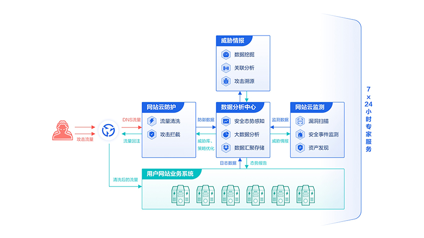 托管式云端安全防護(hù)服務(wù),采用云端流量牽引模式,精準(zhǔn)覆蓋各類Web應(yīng)用攻擊,識(shí)別惡意請(qǐng)求,防御未知為威脅,分鐘級(jí)接入實(shí)現(xiàn)防入侵、防掃描、防攻擊、防數(shù)據(jù)泄露、防CC等攻擊防護(hù),等保必備。