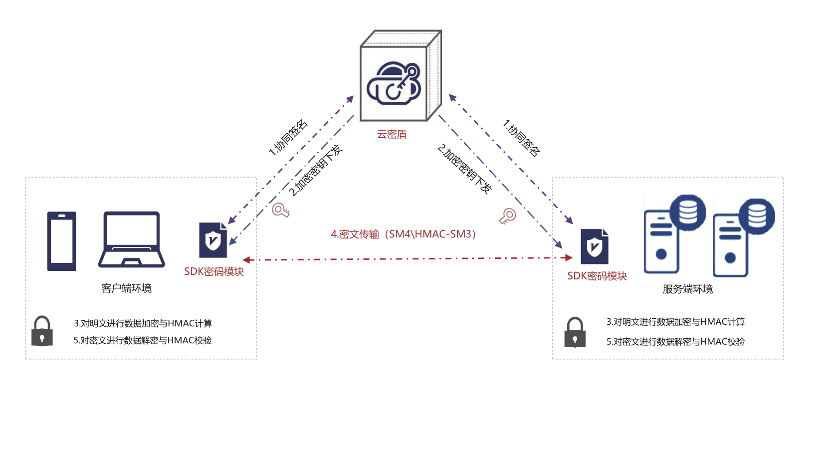 內(nèi)置協(xié)同簽名能力,通過利用私鑰分割(非對稱加密),實現(xiàn)終端可信驗證。