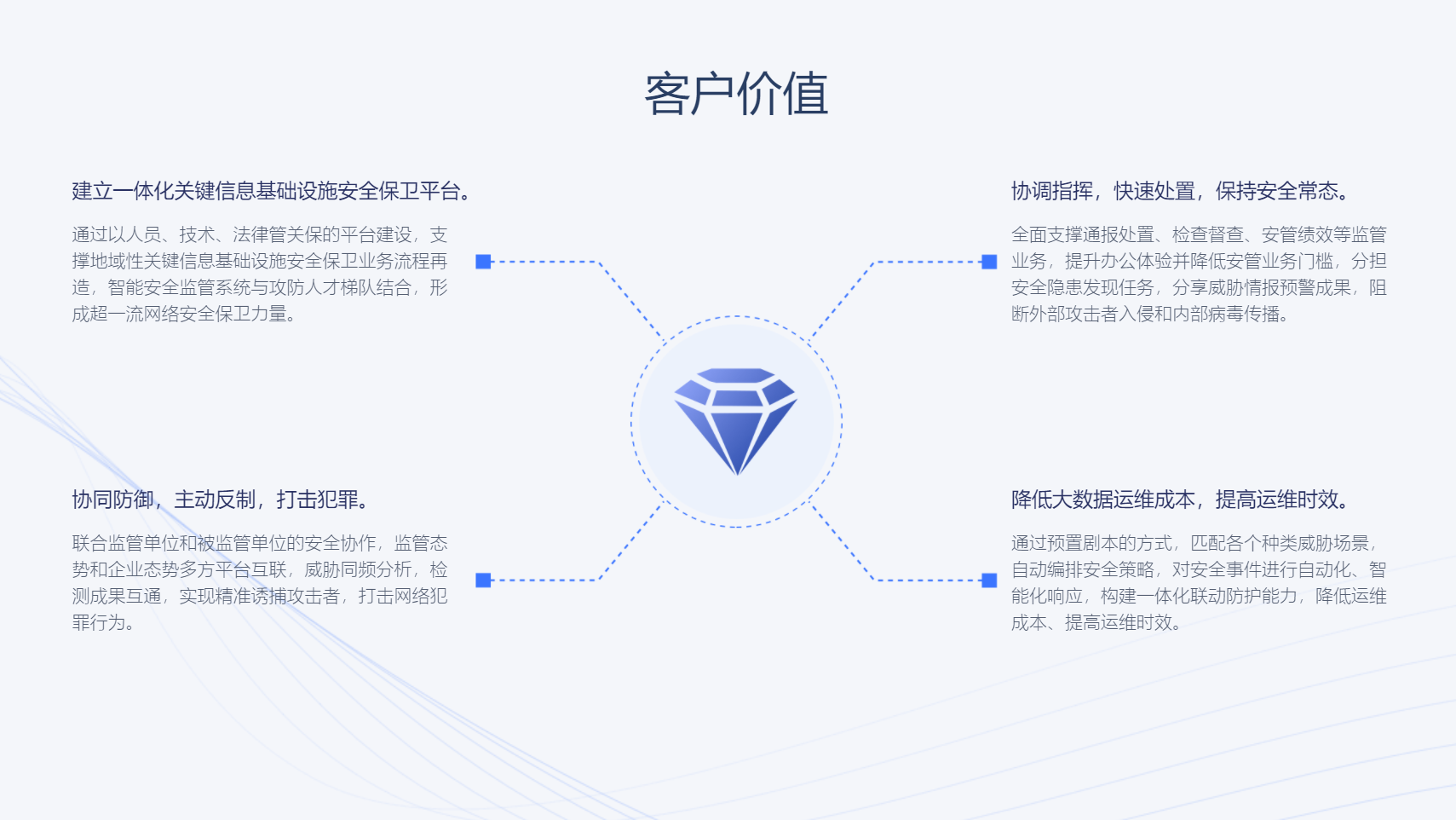 聯(lián)合監(jiān)管部門與被監(jiān)管單位,共同搭建 新交互、全推送、簡流程、清進展 的安全協(xié)作平臺,監(jiān)管態(tài)勢和企業(yè)態(tài)勢多方平臺互聯(lián)互通,響應(yīng)流程快速閉環(huán),提升安全管理工作整體效能。