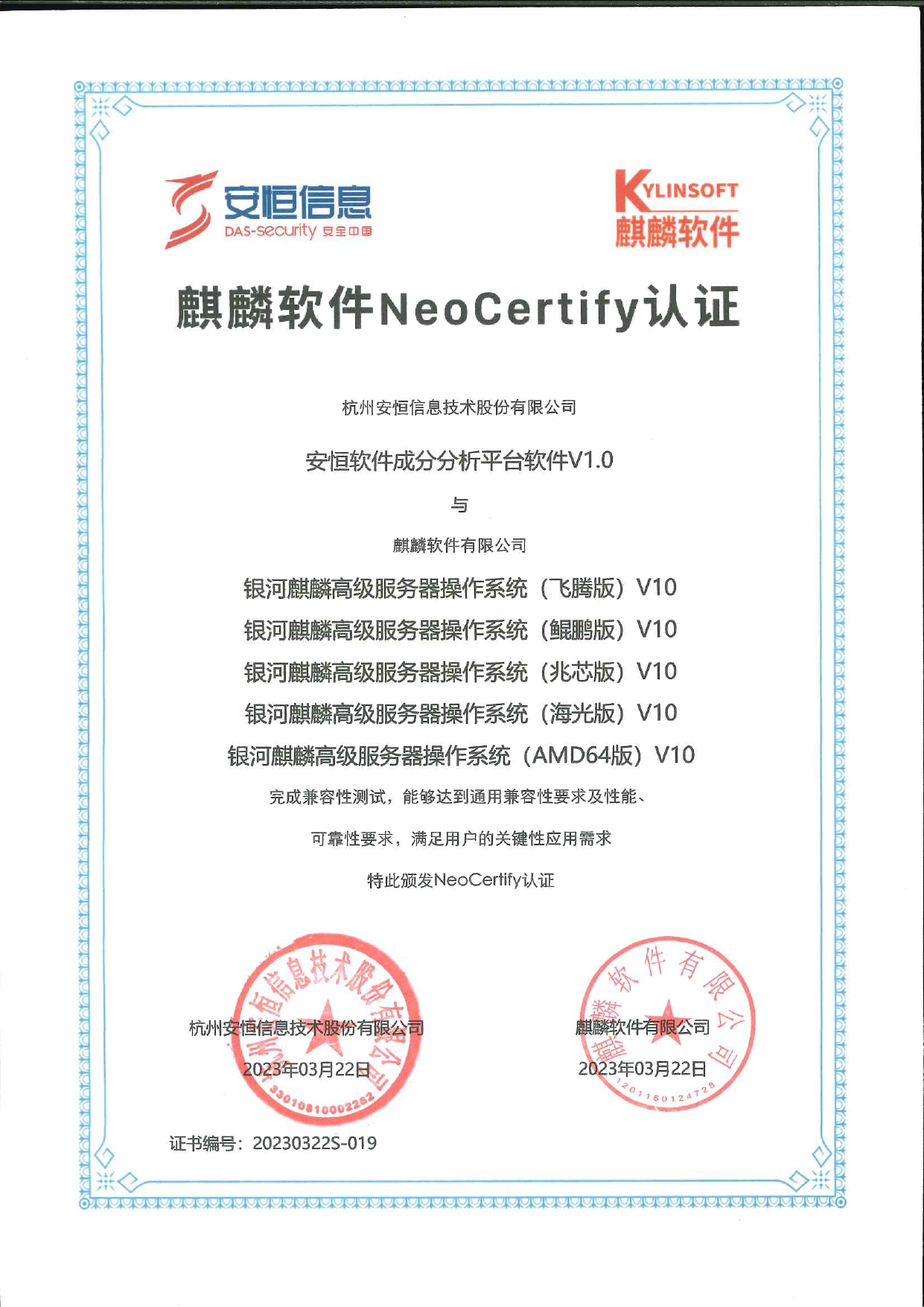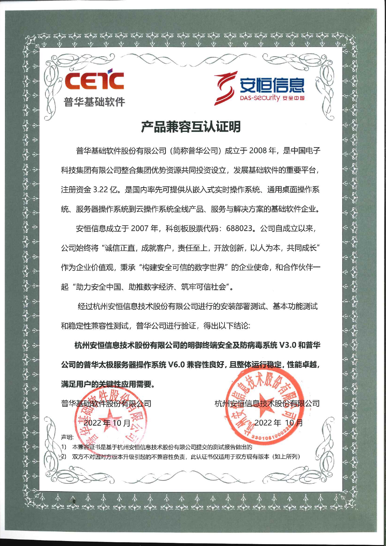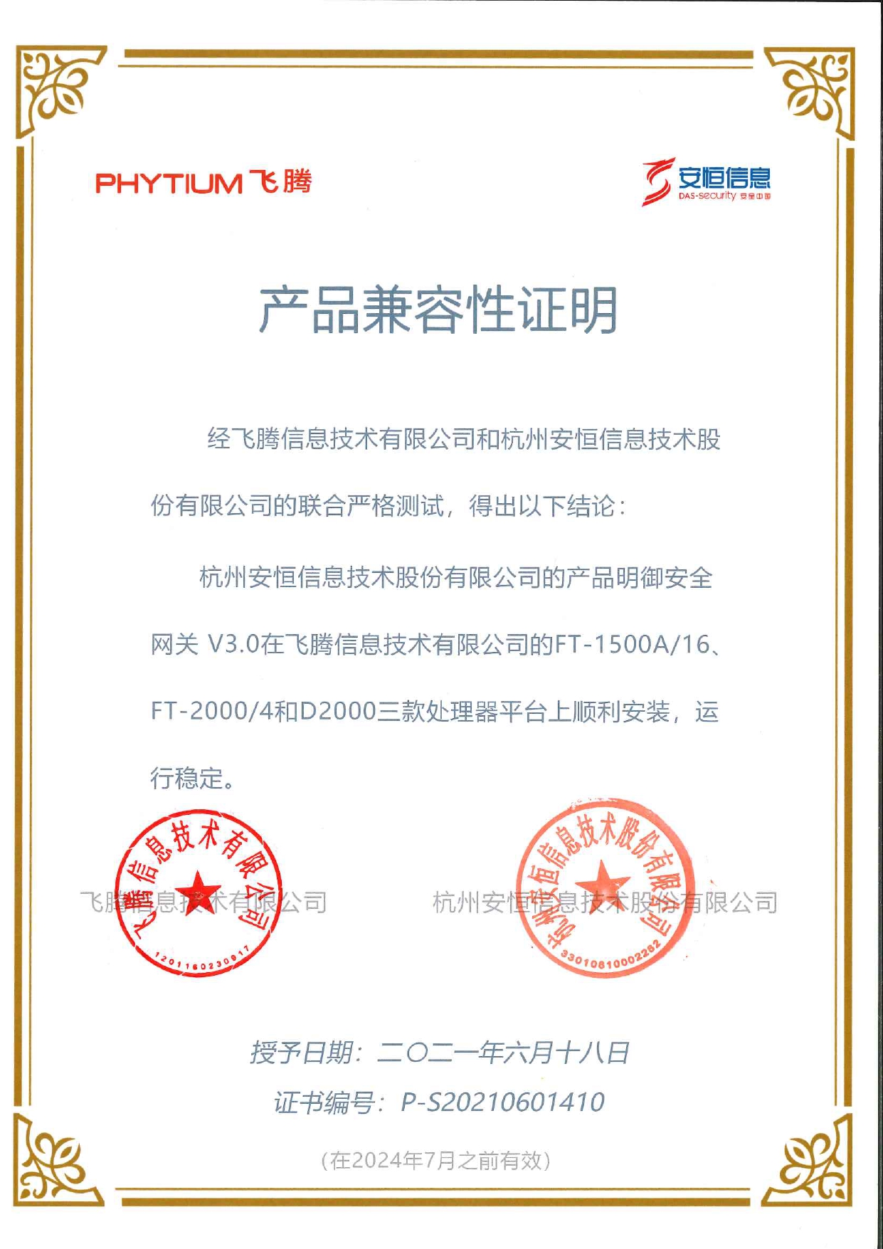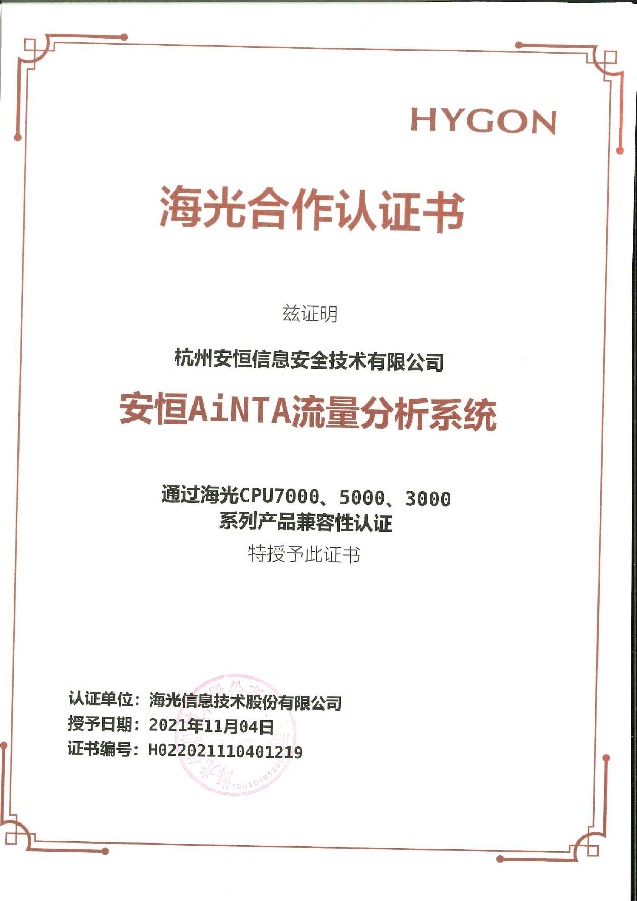 - 安恒信息AiLPHA大數(shù)據(jù)智能安全平臺(tái)、APT攻擊預(yù)警平臺(tái)分別與華為TaiShan 200系列完成兼容性測(cè)試。華為智能計(jì)算授予安恒信息HUAWEI COMPATIBLE證書(shū)及相關(guān)認(rèn)證徽標(biāo)使用權(quán)。
