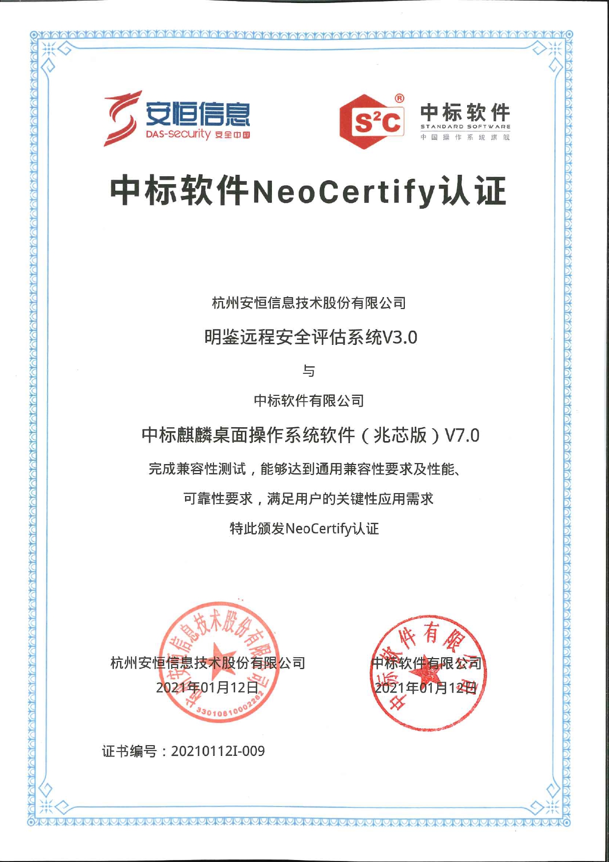 - AiLPHA大數(shù)據(jù)智能安全平臺(tái)分別完成申威和深之度兼容性互認(rèn)證。
